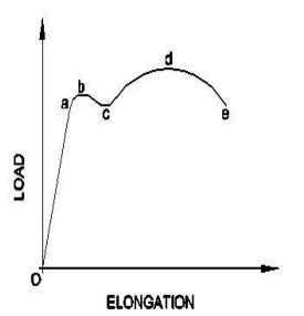 18. What does the point ʹbʹ denotes in the stress-strain graph?प्रतिबल-विकृति ग्राफ में बिन्दु ʹbʹ क्या दर्शाता है? [Bharat Skill QB] (A) Elastic limit लोचदार सीमा (B) Yield point यील्ड बिंदु (C) Limit of proportionality आनुपातिकता की सीमा (D) Ultimate load अंतिम भारANSWER - AShow Answer