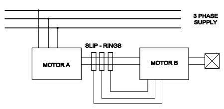 49. What is the name of the speed control method as shown in the figure?चित्र में दर्शाई गई गति नियंत्रण विधि का नाम क्या है? [Bharat Skill QB] (A) Cascade operation कैस्केड ऑपरेशन (B) By rotor rheostat control रोटर रिओस्टेट नियंत्रण द्वारा (C) By injecting Emf in the rotor circuit रोटर सर्किट में ईएमएफ इंजेक्ट करके (D) By changing the number of pole पोल की संख्या बदलकरANSWER - AShow Answer