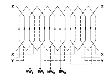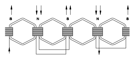 14. What is the name of the coil winding as shown in the figure?जैसा कि चित्र में दिखाया गया है, कुंडल वाइंडिंग का क्या नाम है? [Bharat Skill QB] (A) Concentric coil winding कंसेंट्रिक कॉइल वाइंडिंग (B) Distributed coil winding वितरित कुंडल वाइंडिंग (C) Mesh shaped coil winding जाल आकार की कुंडल वाइंडिंग (D) Diamond mesh shaped coil winding हीरे की जाली के आकार की कुंडल वाइंडिंगANSWER - DShow Answer