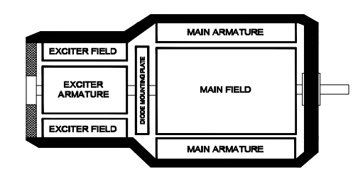 19. What is the type of an alternator as shown below?जैसा कि नीचे दिखाया गया है अल्टरनेटर का प्रकार क्या है? [Bharat Skill QB] (A) Brushless alternator ब्रश रहित अल्टरनेटर (B) Three phase alternator तीन फेज़ अल्टरनेटर (C) Single phase alternator एकल फेज़ अल्टरनेटर (D) Salient pole type alternator सेलियंट ध्रुव प्रकार अल्टरनेटरANSWER - AShow Answer