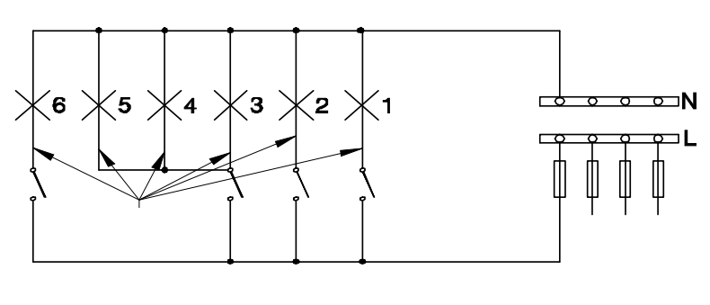 44. What does the symbol marked ʹXʹ indicate as shown in the figure?चित्र में दिखाए अनुसार ʹXʹ चिन्ह क्या दर्शाता है? [Bharat Skill QB] (A) Number of wires run on the limb लिंब पर तारों की संख्या (B) Number of switches to be connected कनेक्ट होने के लिए स्विच की संख्या (C) Number of battern (or) pipe to be fixed बैटन (या) पाइप की संख्या तय करना (D) Number of clamps (or) clips to be fixed क्लैंप (या) क्लिप की संख्या तय करनाANSWER - AShow Answer