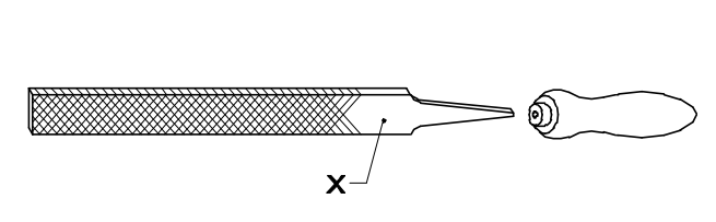 14. What is the name of the part marked ʹXʹ as shown in the figure?चित्र में दिखाए गए ʹXʹ चिन्हित भाग का नाम क्या है? [Bharat Skill Qb] (A) Edge एज (B) Heel हील (C) Tang टैंग (D) Shoulder शोल्डरANSWER - BShow Answer
