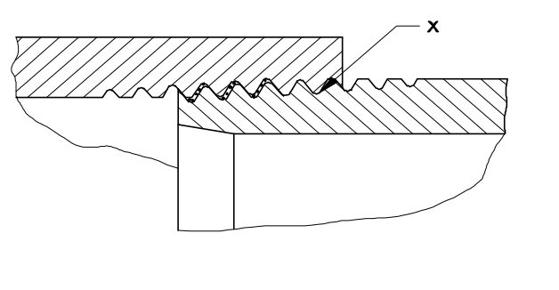 24. What is the name of the formation of thread marked as "X" in the galvanized sheet pipe joint?जस्ती शीट पाइप जोड़ में "X" के रूप में चिह्नित थ्रेड के का नाम क्या है? [Bharat Skill Qb] (A) Hemp जूट (B) Full form thread फुल फॉर्म थ्रेड (C) Tapered male thread तिरछी मेल थ्रेड (D) Parallel female thread समान्तर फीमेल थ्रेडANSWER - DShow Answer