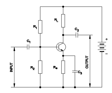 45. Which resistor determines the voltage gain in a common emitter amplifier as shown in the circuit?जैसा कि सर्किट में दिखाया गया है, कौन सा प्रतिरोधक एक सामान्य एमिटर एम्पलीफायर में वोल्टेज गेन निर्धारित करता है? [Bharat Skill QB] (A) R1 (B) R2 (C) RL (D) ReANSWER - CShow Answer