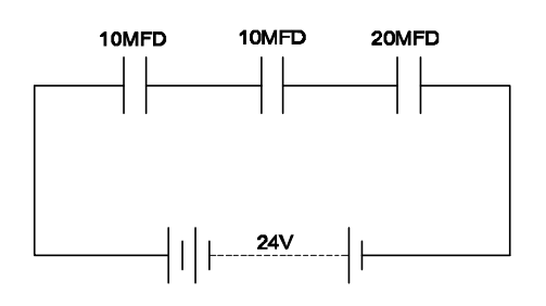 11. Calculate the total value of capacitance of series capacitor circuit.श्रेणी परिपथ की कुल संधारिता की गणना कीजिये [Bharat Skill Qb] (A) 4µfd (B) 10µfd (C) 15µfd (D) 40µfdANSWER - AShow Answer