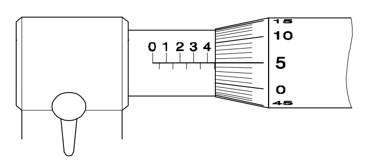 38. What is the reading of the micrometer as shown in the figure?चित्र में दर्शाए अनुसार माइक्रोमीटर का पाठ्यांक क्या है? [Bharat Skill Qb] (A) 5.05 mm (B) 5.00 mm (C) 4.55 mm (D) 4.05 mmANSWER - CShow Answer