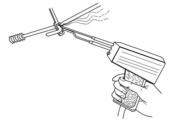 43. What is the name of the soldering method as shown in the figure?चित्र में दर्शाई गई सोल्डरिंग विधि का नाम क्या है? [Bharat Skill Qb] (A) Dip soldering डिप सोल्डरिंग (B) Soldering iron सोल्डरिंग आयरन (C) Soldering gun सोल्डरिंग गन (D) Soldering with flame ज्वाला के साथ सोल्डरिंगANSWER - CShow Answer