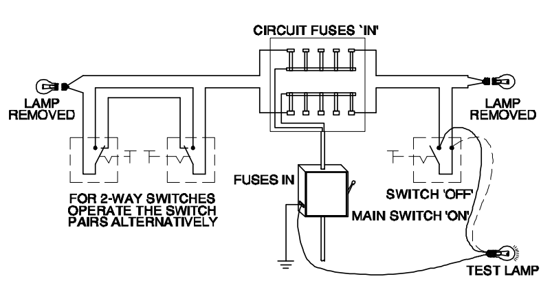 7. What is the type of test in domestic wiring installation as shown in the figure?घरेलू वायरिंग इंस्टालेशन में टेस्ट का प्रकार क्या है? [Bharat Skill QB] (A) Polarity test ध्रुवता टेस्ट (B) Continuity (or) open circuit test निरंतरता (या) खुला परिपथ टेस्ट (C) Insulation resistance test between conductors चालकों के मध्य कुचालक प्रतिरोध टेस्ट (D) Insulation resistance test between conductors and earth चालकों एवं भूमि के मध्य कुचालक प्रतिरोध टेस्टANSWER - AShow Answer