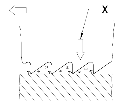 18. What is indicated by the arrow marked as ʹXʹ in the sawing operation shown in the figure? चित्र में दिखाए गए काटने के कार्य में ʹXʹ से चिह्नित तीर द्वारा क्या दर्शाया गया है? (A) Direction of cut कट की दिशा (B) Direction of pressure दबाव की दिशा (C) Reversed position of blade ब्लेड की उलटी स्थिति (D) Direction of motion of blade ब्लेड की गति की दिशाANSWER - BShow Answer