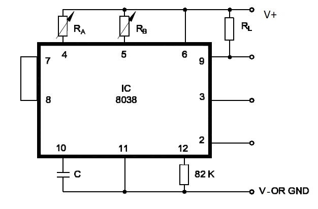 9. What is the name of the circuit built with IC 8038?IC 8038 के साथ निर्मित सर्किट का नाम क्या है? (A) Pulse generator पल्स उत्पन्न करने वाला (B) Sine wave generator साइन तरंग जनरेटर (C) Square wave generator वर्ग तरंग जनरेटर (D) Function generator फ़ंक्शन जनरेटरANSWER - DShow Answer