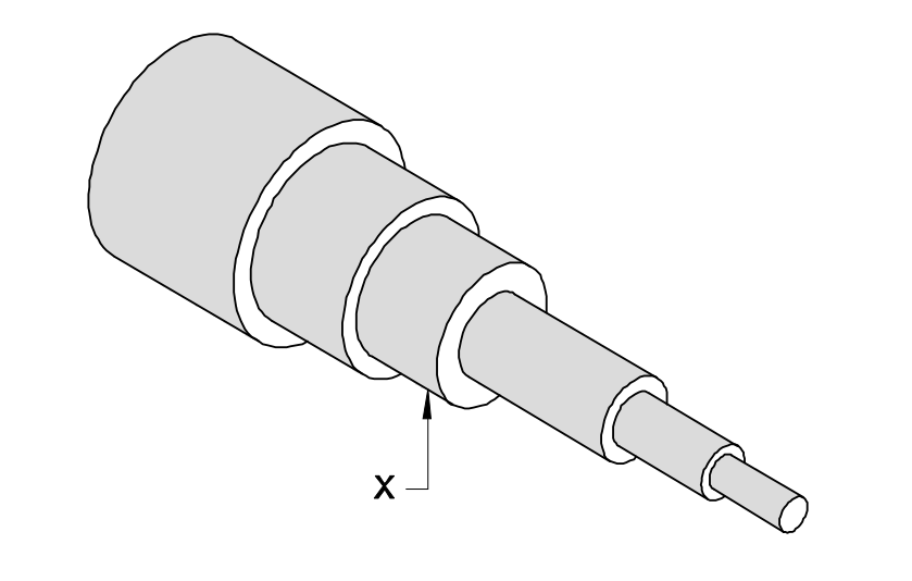 16. What is the name of optical fiber cable part marked "X"?ऑप्टिकल फाइबर केबल भाग "X" का नाम क्या है? (A) Core कोर (B) Cladding क्लैडिंग (C) Buffer jacket बफर जकेट (D) Strength member शक्ति सदस्यANSWER - CShow Answer