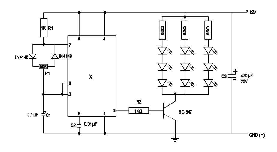 4. Which IC is marked as ʹXʹ in LED driver circuit shown in the figure?चित्र में दिखाए गए LED ड्राइवर सर्किट में कौन सा IC ʹXʹ से चिह्नित है? (A) IC 741 (B) IC 555 (C) LM 723 (D) LM 317ANSWER - BShow Answer