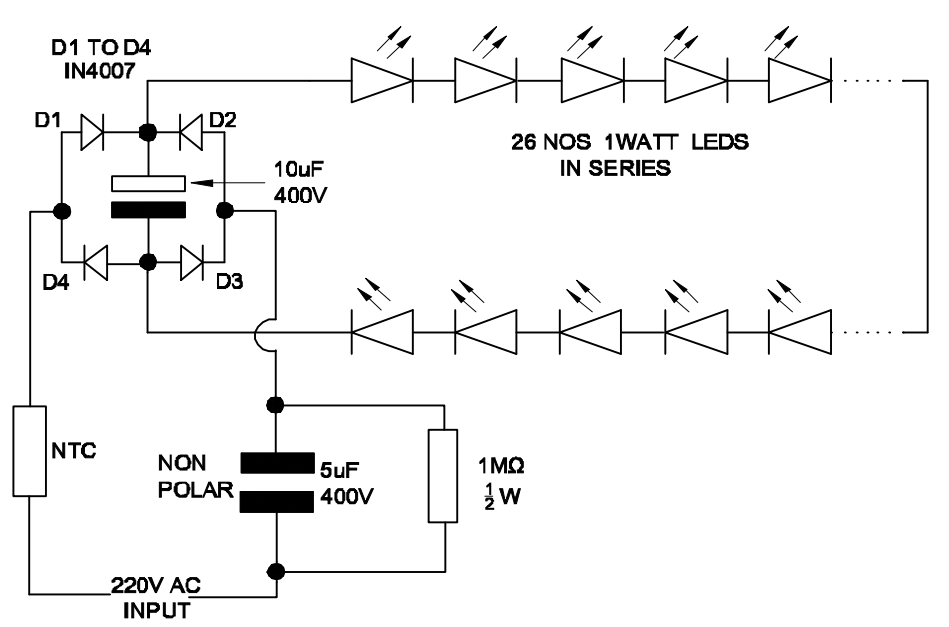 13. What is the function of the non-polar capacitor in the LED circuit?LED सर्किट में गैर-ध्रुवीय संधारित्र का कार्य क्या है? (A) Stops RF interference RF हस्तक्षेप को रोकता है (B) Smoothens DC supply निरंतर DC आपूर्ति (C) Couples DC supply युगल DC आपूर्ति (D) Couples AC supply युगल AC आपूर्तिANSWER - DShow Answer