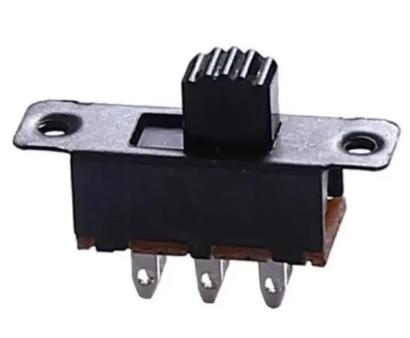 45. Which type of switch is this?यह किस प्रकार का स्विच है? [NCVT Exam 24] (A) Loudspeakers लाउडस्पीकरों (B) Slide type स्लाइड टाइप (C) Coaxial connectors समाक्षीय कनेक्टर (D) Preset resistors प्रीसेट रेसिस्टर्सANSWER - BShow Answer