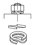 50. What is the name of the locking device shown in the figure?चित्र में दिखाए गए लॉकिंग डिवाइस का नाम क्या है? [Bharat Skill QB] (A) Tab washer टैब वाशर (B) Locking plate लॉकिंग प्लेट (C) Lock washer लॉक वॉशर (D) Spring washer स्प्रिंग वॉशरANSWER - DShow Answer