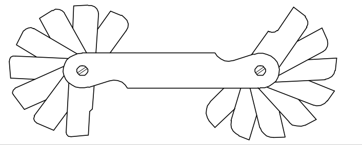 25. What is the name of the gauge shown in the figure?चित्र में दिखाए गए गेज का नाम क्या है? [Bharat Skill QB] (A) Pitch gauge पिच गेज (B) Angle gauge एंगल गेज (C) Feeler gauge फीलर गेज (D) Radius gauge त्रिज्या गेजANSWER - DShow Answer