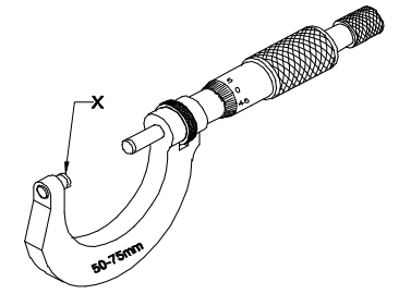 41. What is the name of the part marked as "X" shown in the figure?चित्र में दिखाए गए "X" से चिह्नित भाग का नाम क्या है? [Bharat Skill QB] (A) Anvil एन्विल (B) Thimble थिम्ब्ल (C) Spindle स्पिंडल (D) Spindle lock स्पिंडल लॉकANSWER - AShow Answer
