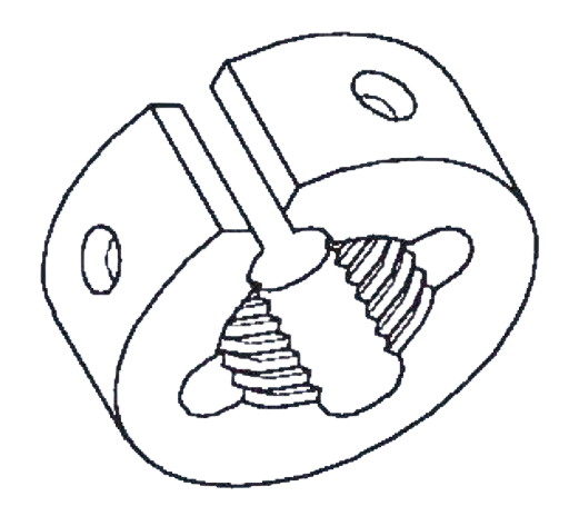 117. What is the name of the die shown in the figure?चित्र में दिखाए गए डाई का नाम क्या है? [NCVT Exam 24] (A) Circular split die सर्कुलर स्प्लिट डाई (B) Die nut डाई नट (C) Half die हाफ डाई (D) Adjustable screw plate die एडजस्टेबल स्क्रू प्लेट डाईANSWER - AShow Answer
