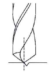 119. Which drilling defect is shown in the figure?चित्र में कौन सा ड्रिलिंग दोष दिखाया गया है? [NCVT Exam 24] (A) Unequal lip length असमान लिप की लंबाई (B) Drill point not in the centre ड्रिल पॉइंट केंद्र में नहीं है (C) Unequal point thinning असमान बिंदु पतला होना (D) Unequal flow of chips चिप्स का असमान प्रवाहANSWER - BShow Answer