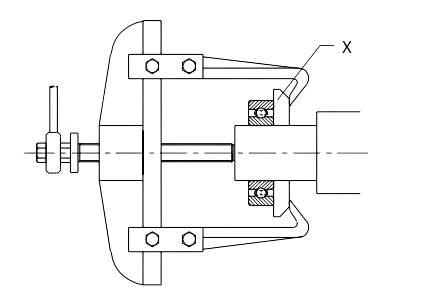 42. What is the name of the part marked as ʹXʹ shown in the figure?चित्र में दिखाए गए ʹXʹ से चिह्नित भाग का नाम क्या है? [NCVT Exam 24] (A) Puller पुलर (B) Leg लेग (C) Puller plate पुलर प्लेट (D) Bearing बियरिंगANSWER - CShow Answer