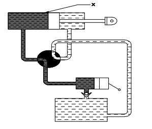 42. What is the name of the part marked as ʹXʹ shown in the figure?चित्र में दिखाए गए ʹXʹ से चिह्नित भाग का नाम क्या है? [Bharat Skill QB] (A) Two piston valve टू पिस्टन वाल्व (B) Double acting cylinder डबल एक्टिंग सिलेंडर (C) Pump पंप (D) Reservoir रेज़र्व्वैरANSWER - BShow Answer