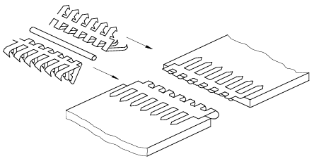 8. What is the name of the belt fastener shown in the figure?चित्र में दिखाए गए बेल्ट फास्टनर का नाम क्या है? [Bharat Skill QB] (A) Wire type वायर टाइप (B) Lagrelle type लगरैला टाइप (C) Alligator type एलीगेटर टाइप (D) Crescent plate type क्रिसेंट प्लेट टाइपANSWER - CShow Answer
