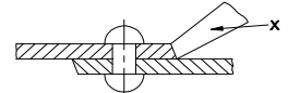 58. Name the tool marked as "X" in riveting.रिवेटिंग मे "X" के रूप में चिह्नित टूल का नाम बताए। [Bharat Skill QB] (A) Drift ड्रिफ्ट (B) Rivet snap रिवेट स्नेप (C) Caulking tool कॉकिंग टूल (D) Fullering tool फुलरिंग टूलANSWER - DShow Answer