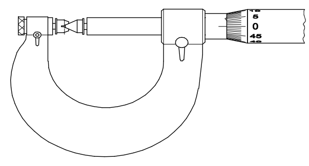 33. What is the name of instrument?इस यंत्र का नाम क्या है? [Bharat Skill QB] (A) Vernier micrometer वर्नियर माइक्रोमीटर (B) Outside micrometer बाहरी माइक्रोमीटर (C) Three wire micrometer तीन वायर माइक्रोमीटर (D) Screw thread micrometer स्क्रू थ्रेड माइक्रोमीटरANSWER - DShow Answer