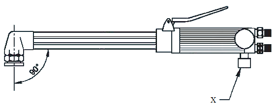 37. What is the name of the part marked as ʹxʹ shown in the figure?चित्र में दिखाए गए ʹxʹ से चिह्नित भाग का नाम क्या है? [NCVT Exam 24] (A) Acetylene valve एसिटिलीन वाल्व (B) Oxygen pipe ऑक्सीजन पाइप (C) Oxygen valve ऑक्सीजन वाल्व (D) Oxygen level ऑक्सीजन का स्तरANSWER - AShow Answer